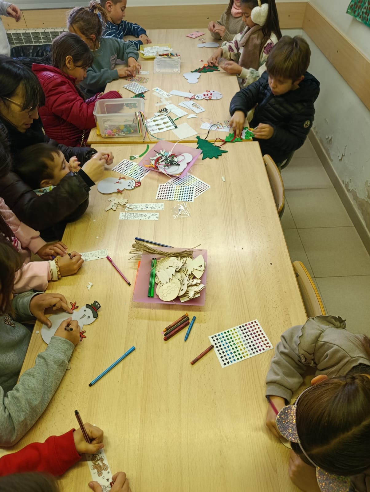 Durant aquella la tarda, les famílies també van poder gaudir d’una xocolatada i d’un taller artístic de Nadal, que es va dur a terme al menjador de la llar. Els nens i nenes van fer decoracions de Nadal, i van participar en la creació d’un cel dels desitjos amb estrelles on cadascú va escriure el seu desig.